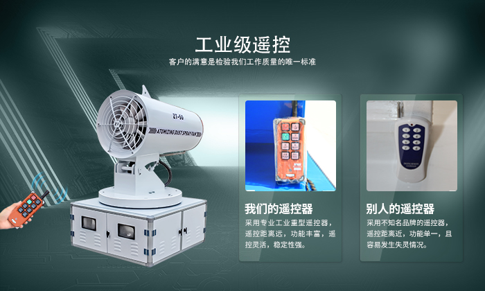 型號 | 靜風(fēng)射程 (m) | 風(fēng)機(jī)功率(Kw) | 水泵功率 (Kw) | 總功率(Kw) | 俯仰角度 (常規(guī)) | 旋轉(zhuǎn)角度 | 噴頭數(shù)量 | 20米處噪音 (dB) | 箱體重量 (kg) | ||