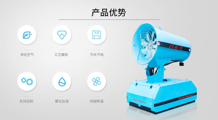 型號 | 靜風射程 (m) | 風機功率(Kw) | 水泵功率 (Kw) | 總功率(Kw) | 俯仰角度 (常規(guī)) | 旋轉角度 | 噴頭數(shù)量 | 20米處噪音 (dB) | 箱體重量 (kg) | ||