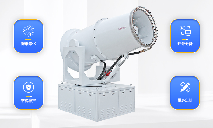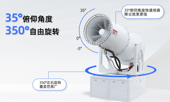 型號(hào) | 靜風(fēng)射程 (m) | 風(fēng)機(jī)功率(Kw) | 水泵功率 (Kw) | 總功率(Kw) | 俯仰角度 (常規(guī)) | 旋轉(zhuǎn)角度 | 噴頭數(shù)量 | 20米處噪音 (dB) | 箱體重量 (kg) | ||